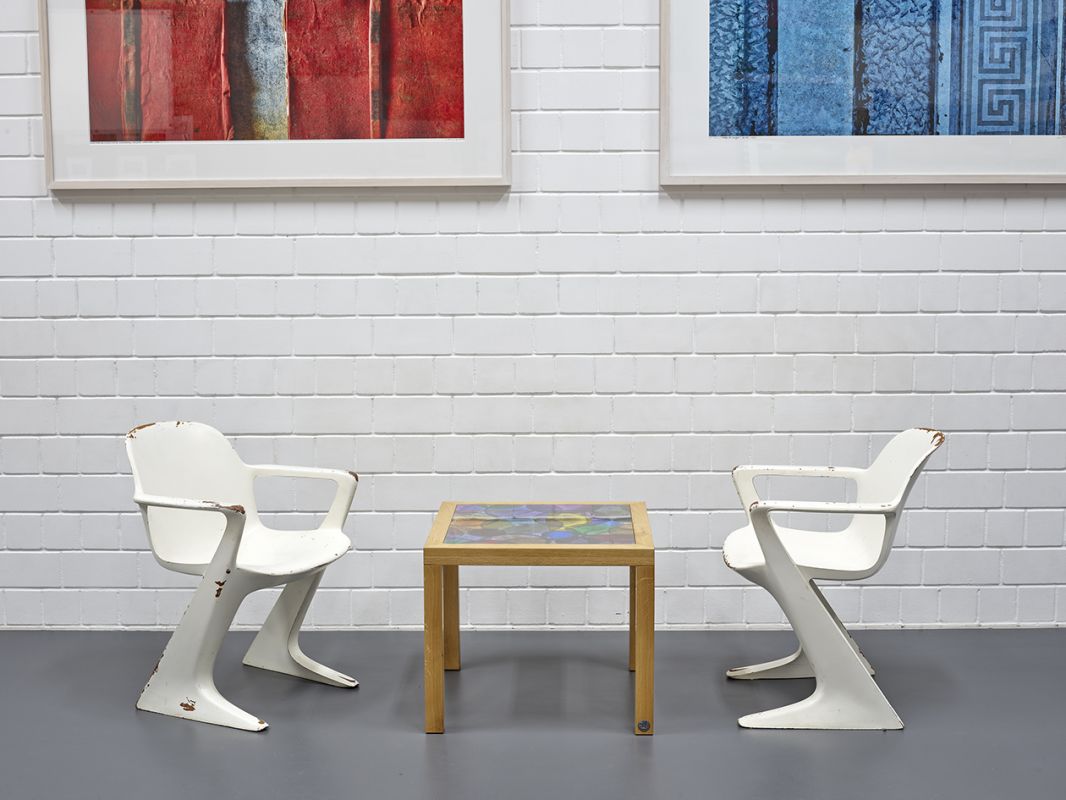 Z-Stuhl, entworfen von Ernst Moeckl in den 1960er Jahren. Ein Freischwinger aus Polyurethan, den es mit und ohne Armlehnen gibt.