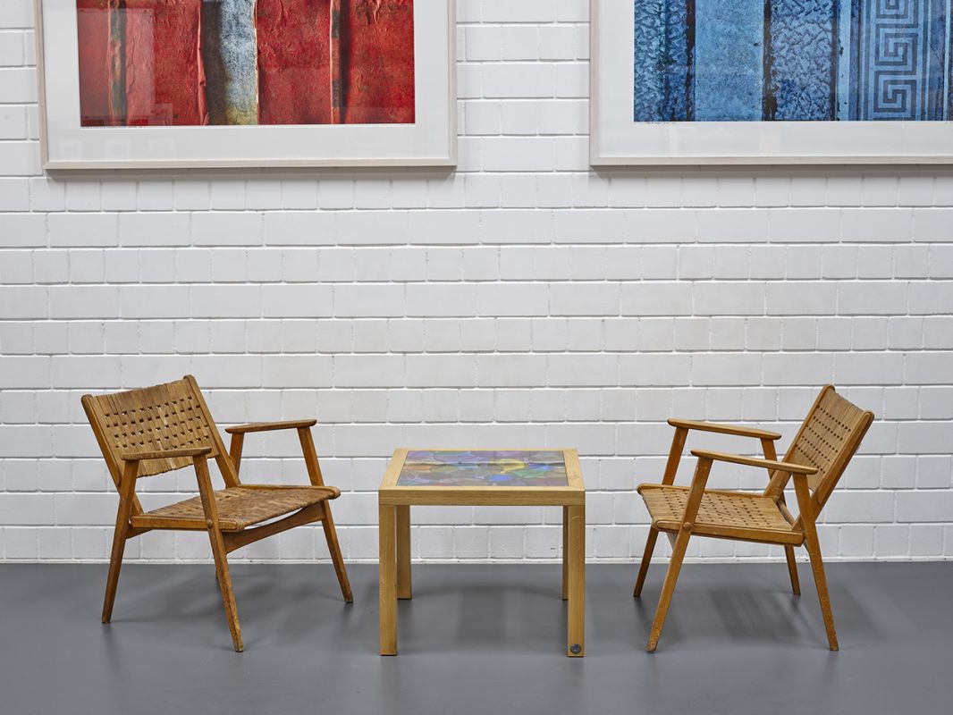 Armlehnstuhl, in Buche, um 1935, Sitzmöbel der Möbelfabrik Gelenka - Thüringen, Entwurf Erich Dieckmann, bewegliche und durch Spiralfedern verbundene, geflechtartig angeordnete Rechteckhölzchen als Sitz und Rückenlehneneinsatz, breite winklig zurückgesetzte Rückenlehne, kantige hohe Armlehnen, schräg augestellte schlanke Vierkant-Stuhlbeine;