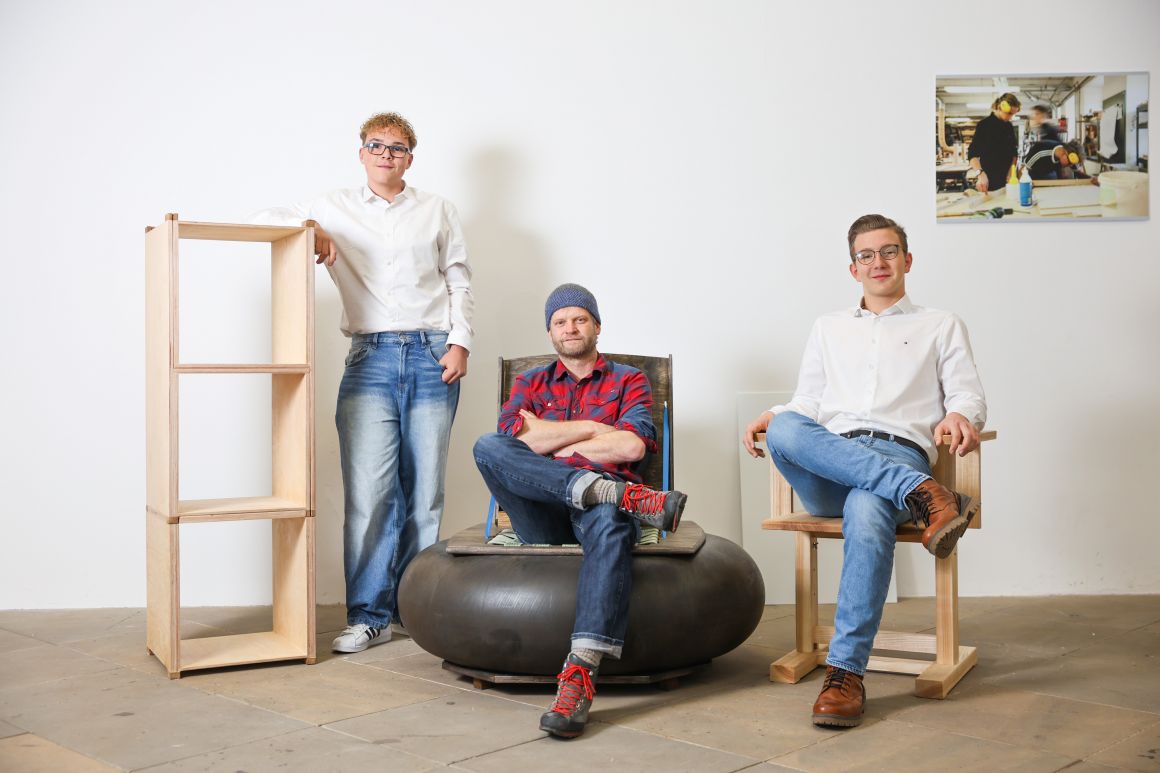 MOLT_FN, FLOT_MN und FOLT_MN sind drei Möbelstücke die im Rahmen eines Wettbewerbes des Japanischen Palais' "W!R Werken" entstanden sind. Unter den Aspekten: Nachhaltigkeit, Innovation und Design sollten sich Schüler und Schülerinnen dem Thema Möbelbau widmen. Die hier entstandenen Möbel wurden von 6 Schülern einer 8. Klasse entworfen und gebaut.